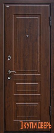 Внутренняя отделка входной двери МеталЮр М9 - МДФ толщиной 18 мм черно матового цвета. Покрытие полотна из экошпона и материала UNILACK. Такая поверхность влагостойкая, не выцветает, не рассыхается. Дверь отлично задерживает внешние звуки и запахи. Приобрести эту дверь можно в Минске с установкой под ключ.