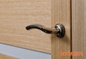 Форма ручек изогнута, что очень удобно при обхвате рукой. Их внешний вид заставляет любоваться, придает неординарный вид входной группе и всему помещению в целом.